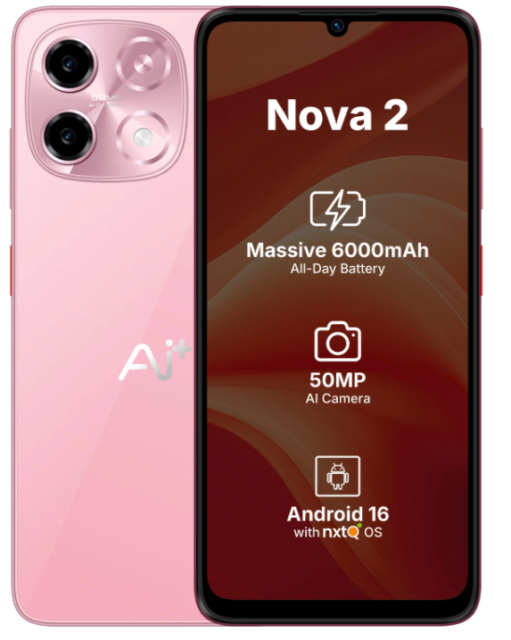 The Ai+ Nova 2 features a 6.75-inch HD+ U-notch LCD display with a 120Hz refresh rate for smoother visuals. It is powered by the Unisoc T8200 processor paired with up to 6GB RAM and 128GB storage.