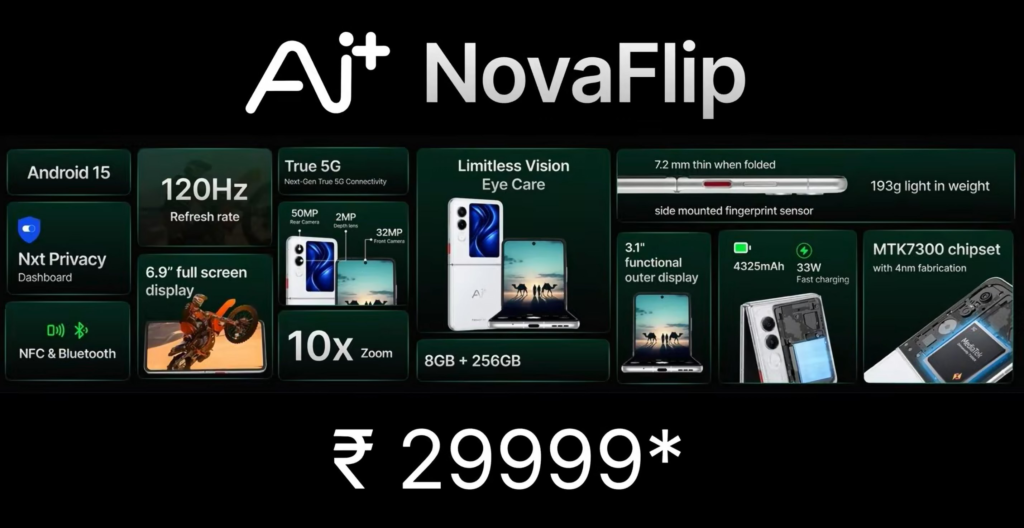 Compared to earlier Ai+ devices, the new lineup introduces significant improvements such as 120Hz refresh rate displays, larger batteries, and improved durability ratings. The Nova Flip marks the brand’s entry into the foldable segment, while the PulseTab expands the ecosystem into tablets with features like LTE connectivity, stereo speakers, and a large battery.