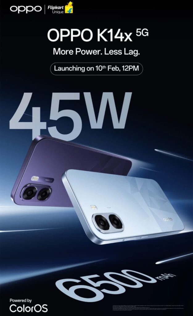OPPO has officially confirmed the launch date of its upcoming budget 5G smartphone, the OPPO K14x 5G, in India. The device is scheduled to debut on February 10 at 12 PM and will be sold exclusively via Flipkart, positioning itself as a strong contender in the highly competitive sub-₹15,000 smartphone segment.