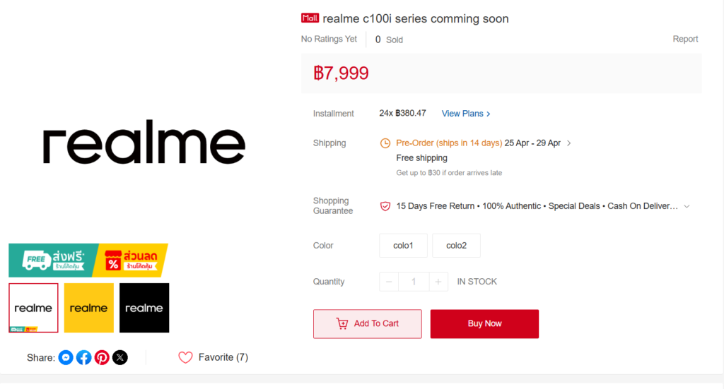 The realme C100i has been spotted with The listing suggests that the device could be available for pre-order soon, with shipping expected within a couple of weeks.