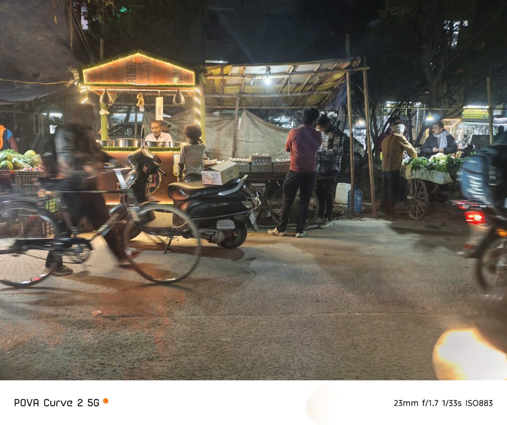 At night, the phone still does a good job. Street photos show lights nicely, and people and shops are visible without too much darkness. Some moving objects may look slightly blurry, but that is normal in low light.