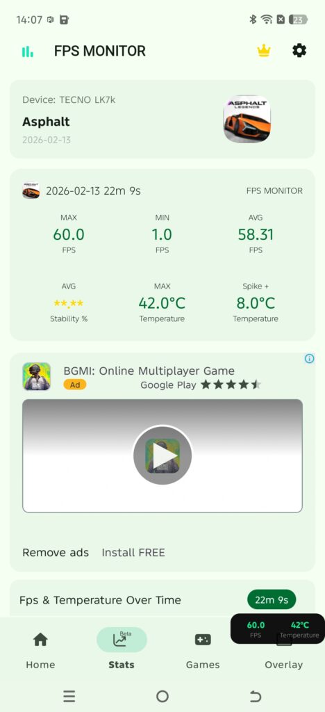When playing games like Asphalt, it ran close to 60 FPS, so the game looked smooth and fun. The phone did not get too hot, staying around 42°C even after long gaming, which is good for comfort and safety.