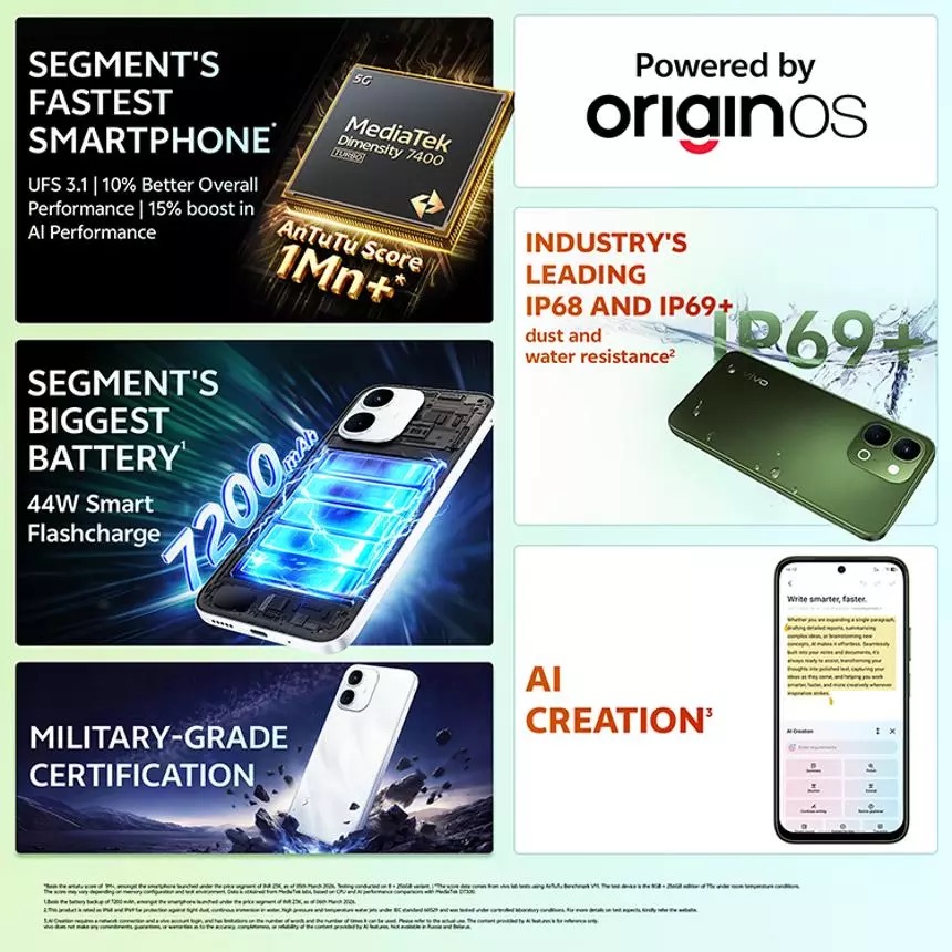 The smartphone runs on Origin OS 6.0, offering a smooth and optimized user interface. It also features a side-mounted fingerprint sensor for quick and secure unlocking.